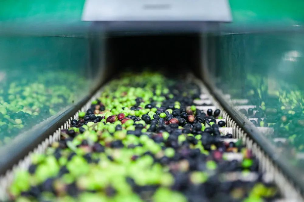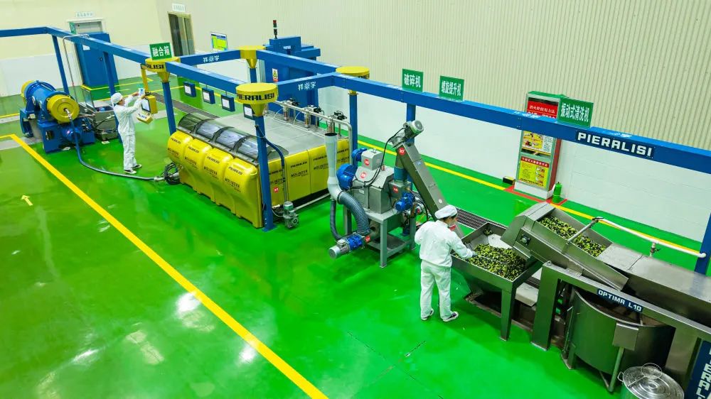 一顆顆橄欖鮮果在現(xiàn)代化生產(chǎn)線上