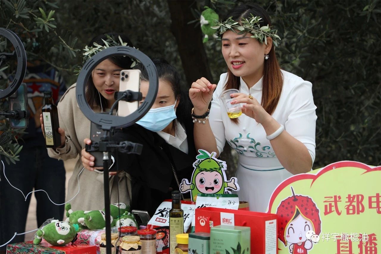 在祥宇生態(tài)產(chǎn)業(yè)園與賀家坪油橄欖基地的直播現(xiàn)場,主播們圍繞橄欖油、橄欖菜,用現(xiàn)場展示、品鑒體驗(yàn)等方式向外界推介宣傳,直播間氣氛異?;钴S。