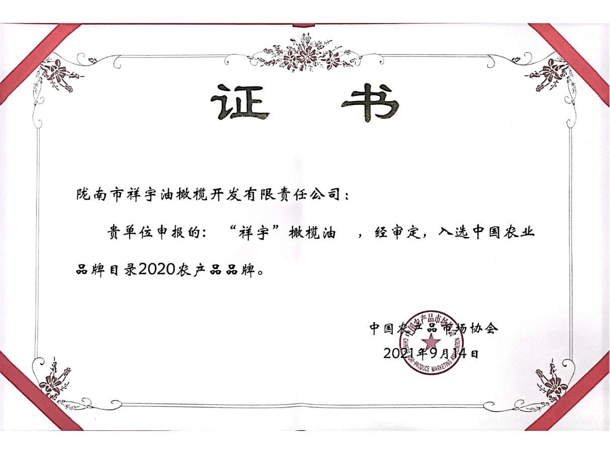 祥宇橄欖油入選中國農業(yè)品牌目錄2020農產(chǎn)品品牌!